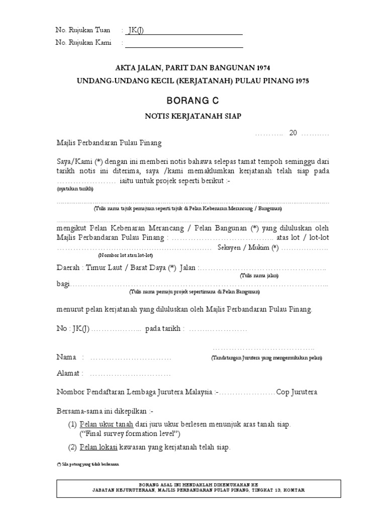 Akta jalan, parit dan bangunan, 1974 (akta 133). Majlis bandaraya ipoh jalan sultan abdul jalil, greentown, 30450 ipoh, perak darul ridzuan www.mbi.gov.my. Majlis perbandaran kuala langat persiaran majlis, jalan sultan alam shah, 42700 banting, selangor darul ehsan. Akta perancang bandar dan desa 1976 (akta 172). Secara hukum, peralihan hak atas tanah dan bangunan tidak bisa dilakukan di bawah tangan tanpa ajb.